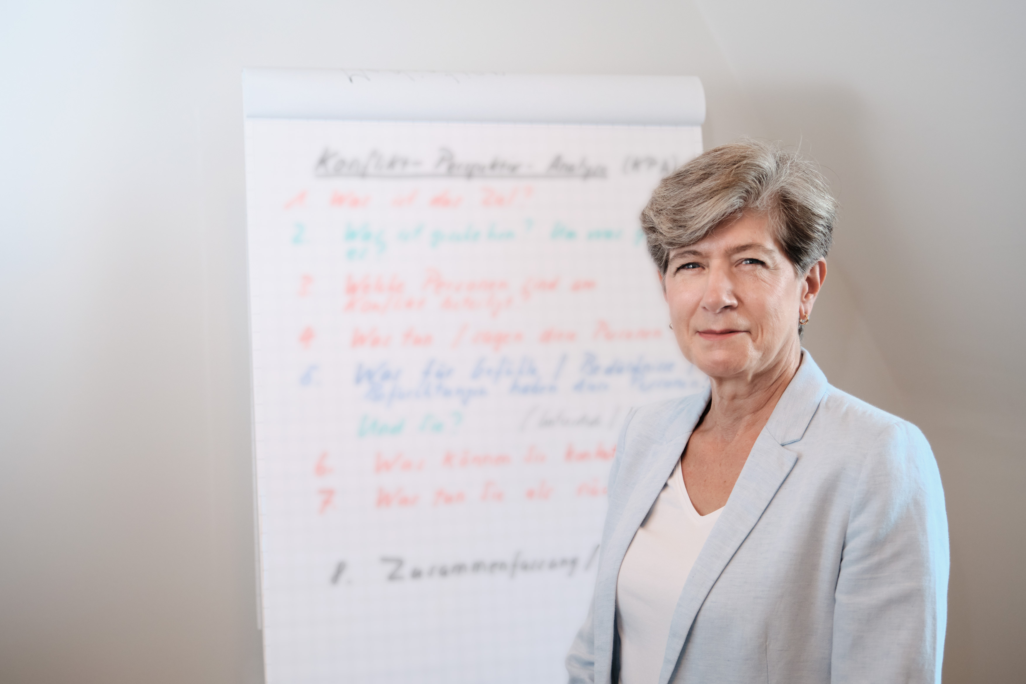 Nach vielen Jahren als Richterin und unzähligen Schlichtungsverfahren bin ich vom Ansatz der gemeinsamen Lösungsfindung überzeugt und begleite Sie gerne als Mediatorin auf dem Weg zu einer konstruktiven Konfliktaustragung.